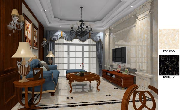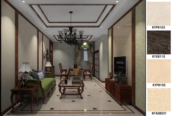 金艾陶瓷磚應(yīng)用效果:徐州開元翡翠灣E戶型裝修效果鑒賞