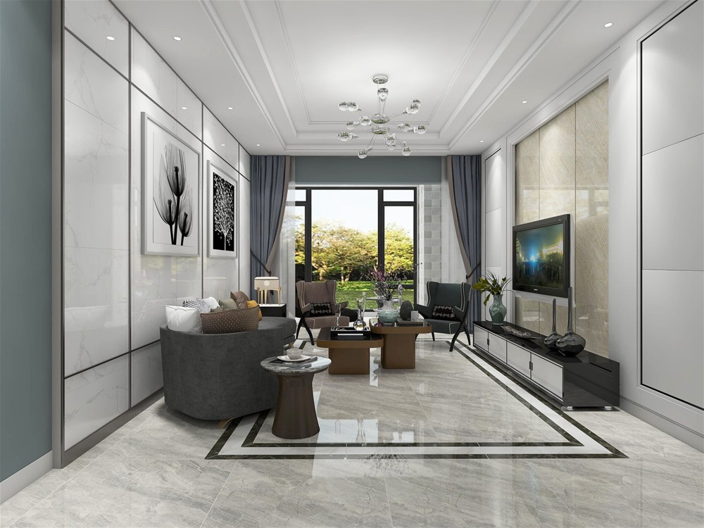 現(xiàn)代簡約客廳通體大理石地面KTA8301+電視背景KTA8088+沙發(fā)背景墻KTA9821