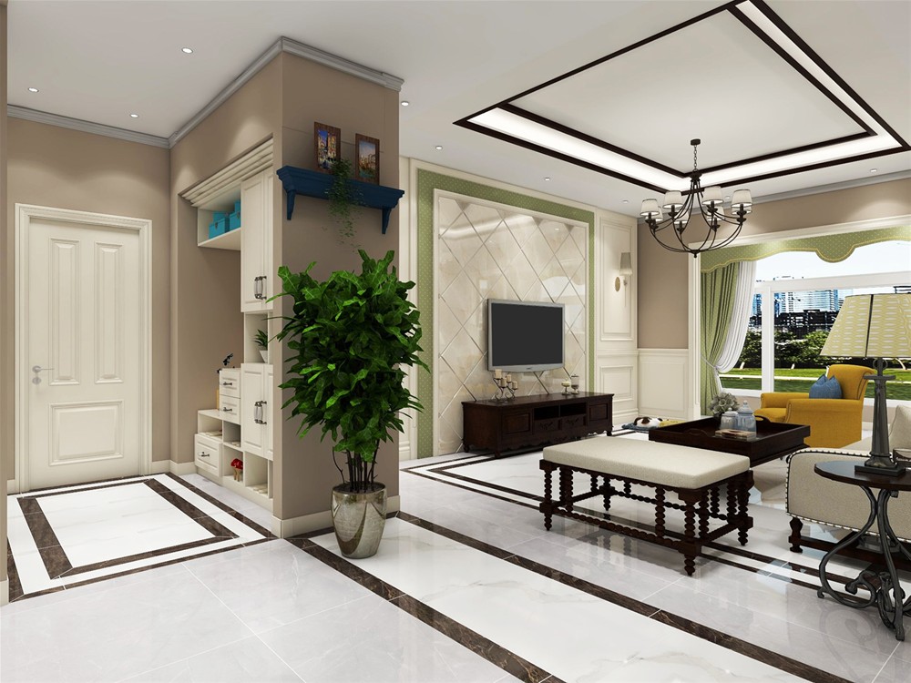 美式田園風(fēng)格對植物的選擇有著較高的要求,一般來說選擇的多數(shù)是不開花的綠色植物,可以均勻的分布在客廳茶幾旁、裝飾柜旁等等,形成錯落有致的格局。