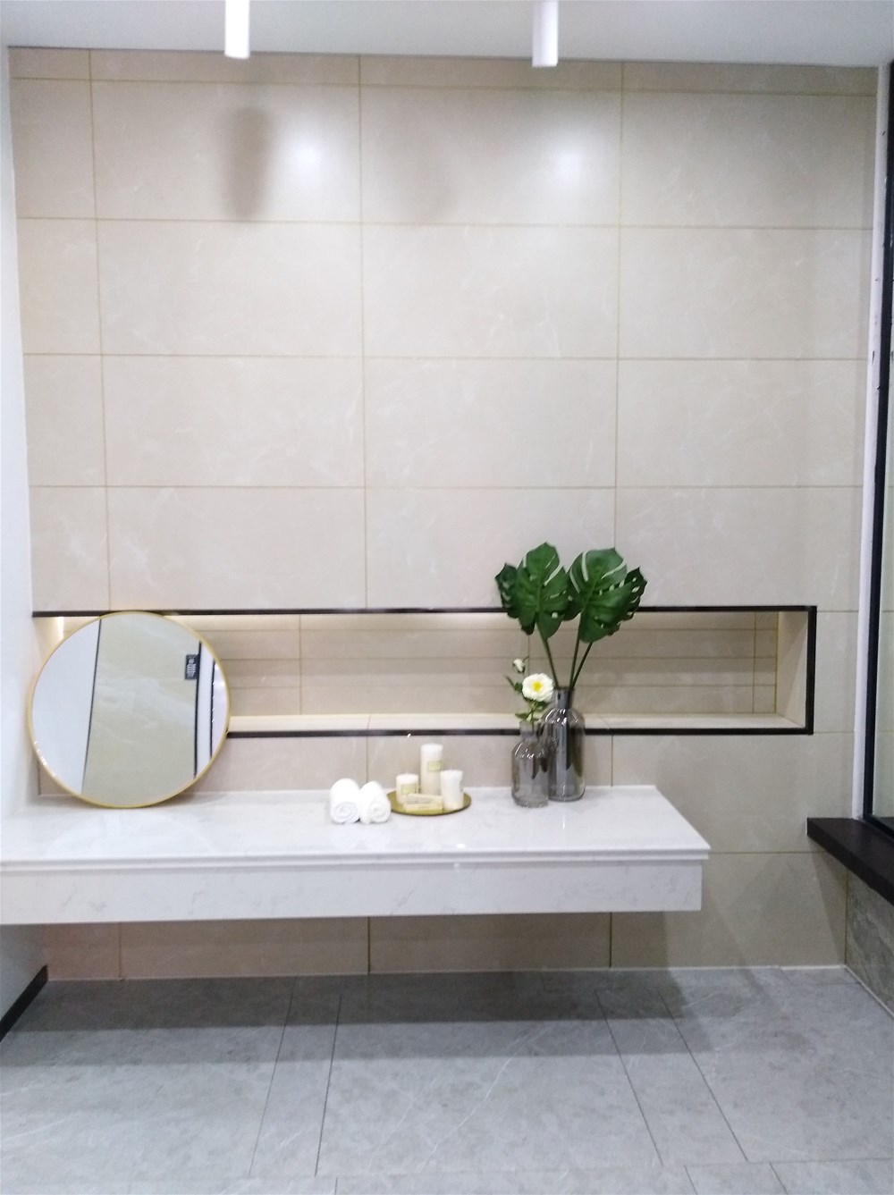以下三個(gè)都是現(xiàn)代簡(jiǎn)約風(fēng)格的衛(wèi)生間,都一致選用了米黃色的瓷磚切割成300*600進(jìn)行鋪貼,300*600規(guī)格適用于小面積,我們展廳也有專(zhuān)門(mén)廚衛(wèi)用的配套噴墨瓷片。拋開(kāi)軟裝來(lái)看這是一個(gè)普通的衛(wèi)生間,但搭配對(duì)了軟裝,就提升了一個(gè)檔次,所以說(shuō)軟裝和硬裝是起到了相得益彰的效果。
