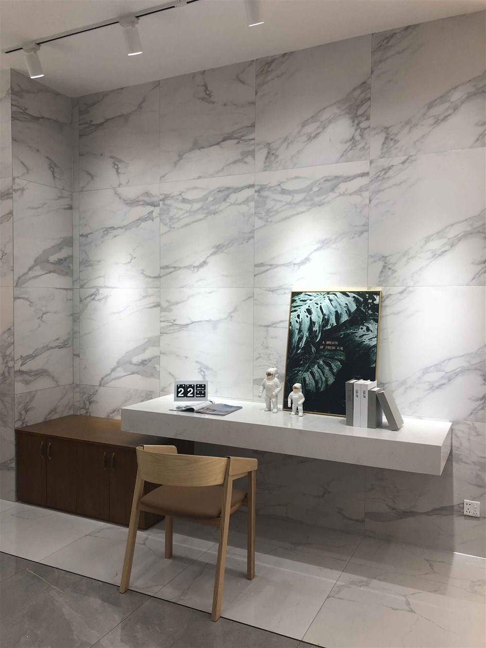 這也是15°緞光釉KFD8801卡拉卡白鋪設(shè)的現(xiàn)代簡約書房,書房、電視背景墻選用緞光釉都能起到一定的護眼作用,是目前很多消費者的首選,喜歡的產(chǎn)品都能先把型號記下來哦!