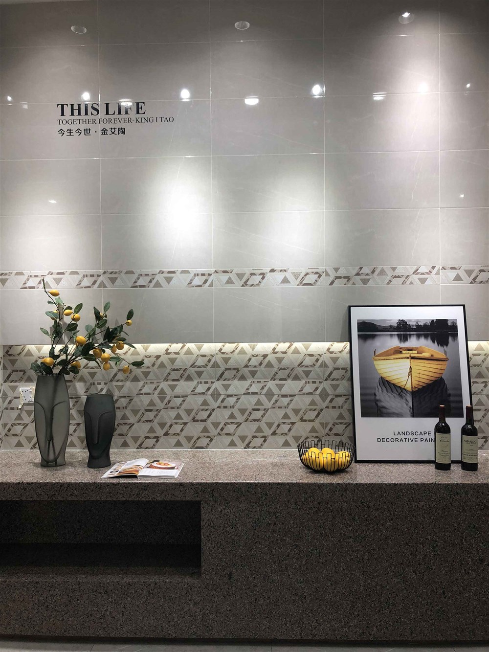 上圖是由艾釉石KYP8118直鋪的墻面,磚面的一層釉是不是很亮?摸上去手感還很好,同行人都知道,我們是佛山本地唯一一家有釉料公司的瓷磚公司,艾釉石是我們的明星產(chǎn)品,質(zhì)量有保障,這款磚同樣適用地面和電視背景墻的鋪貼,看了這么多款灰色調(diào)瓷磚,不知道您有沒有喜歡的呢?