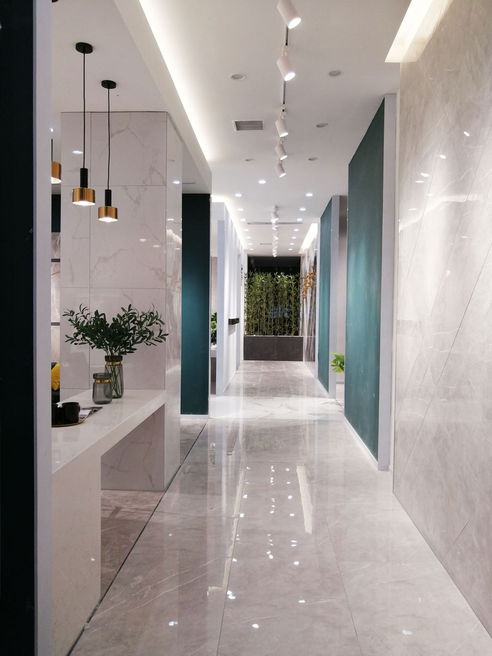 這是由15°緞光釉卡拉卡白KFD126A01通鋪的走廊,白色磚面鑲嵌著飄逸的銀色紋理,大氣灑脫又不失單調(diào)。白色是百搭色,適合與各種顏色隨意搭配,想凹什么造型?你隨意!