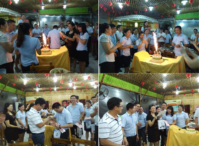 在隨后的上半年慶功晚宴上,更是熱鬧非凡。按照一貫的傳統(tǒng),晚宴上還為本月的壽星舉行了生日宴會(huì),并由董事長親自為壽星們送上生日禮物及親筆書寫的生日賀卡。
