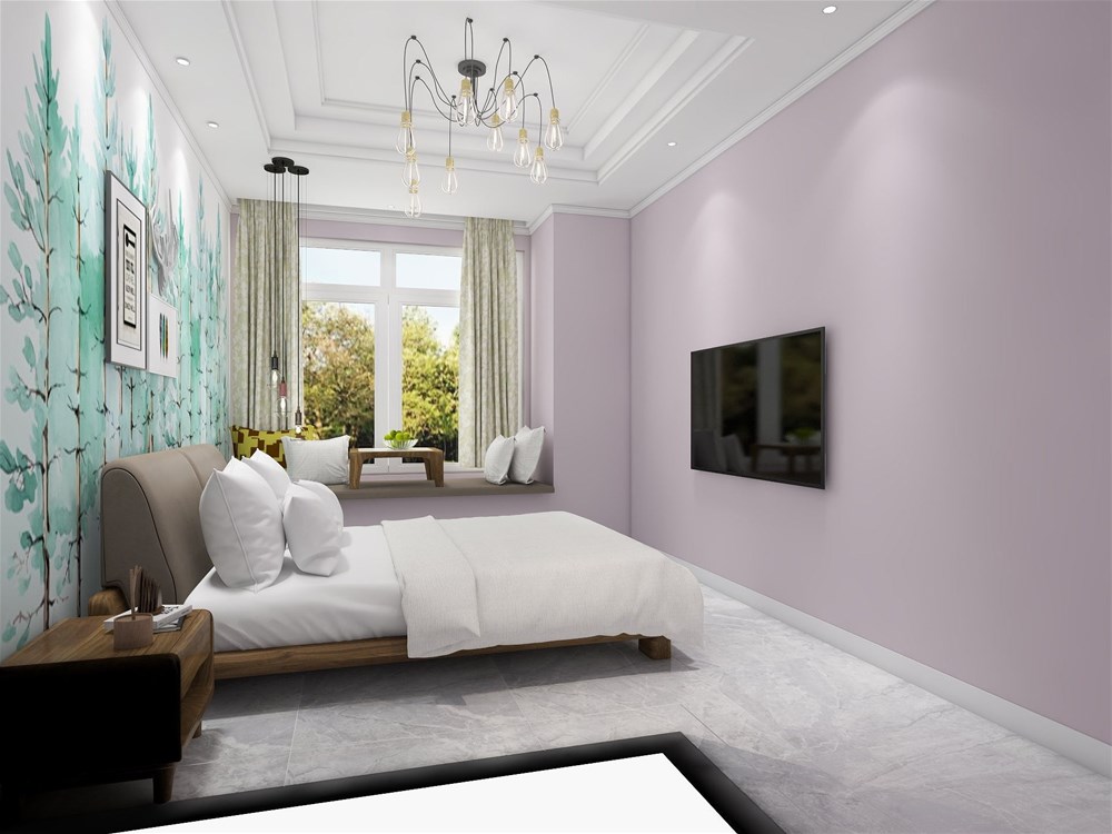 粉色的窗簾與粉色單人沙發(fā)互相呼應(yīng)