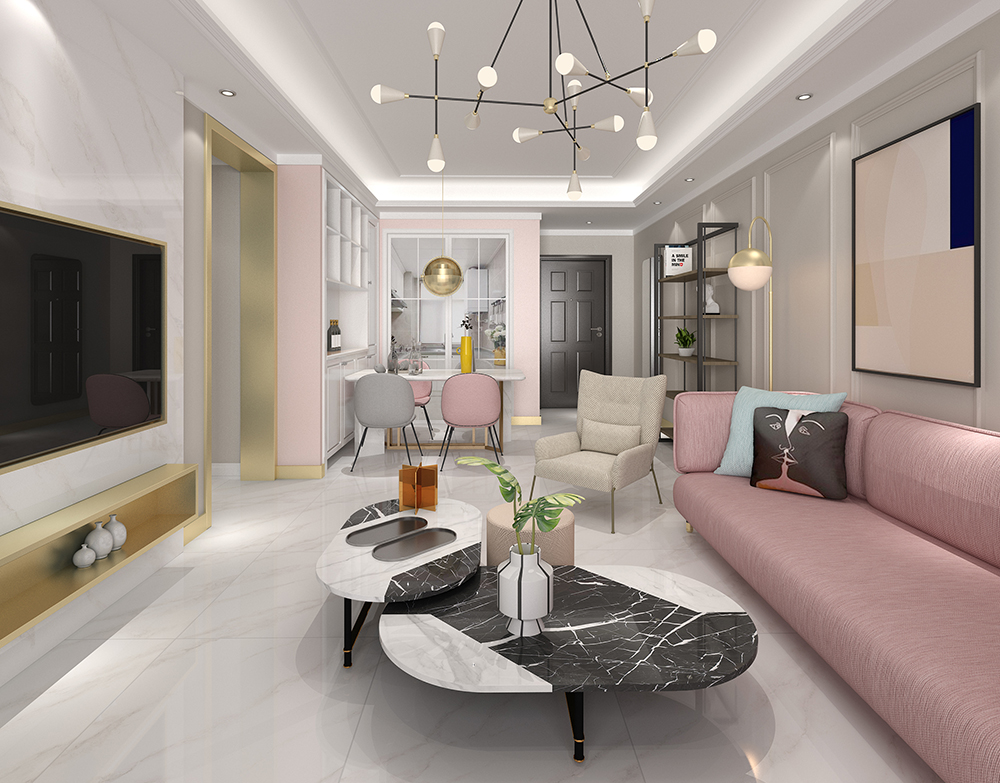 米黃的地磚與粉色碰撞出溫馨、愉快的氣氛