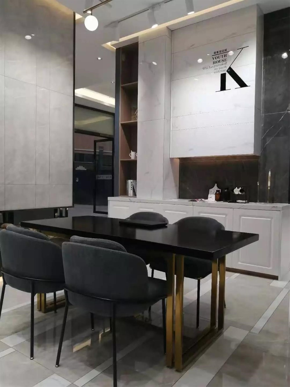 暖灰色通體大理石KA9M009打造前臺背景墻非常有味道,不愧是多年的暢銷榜長青樹。