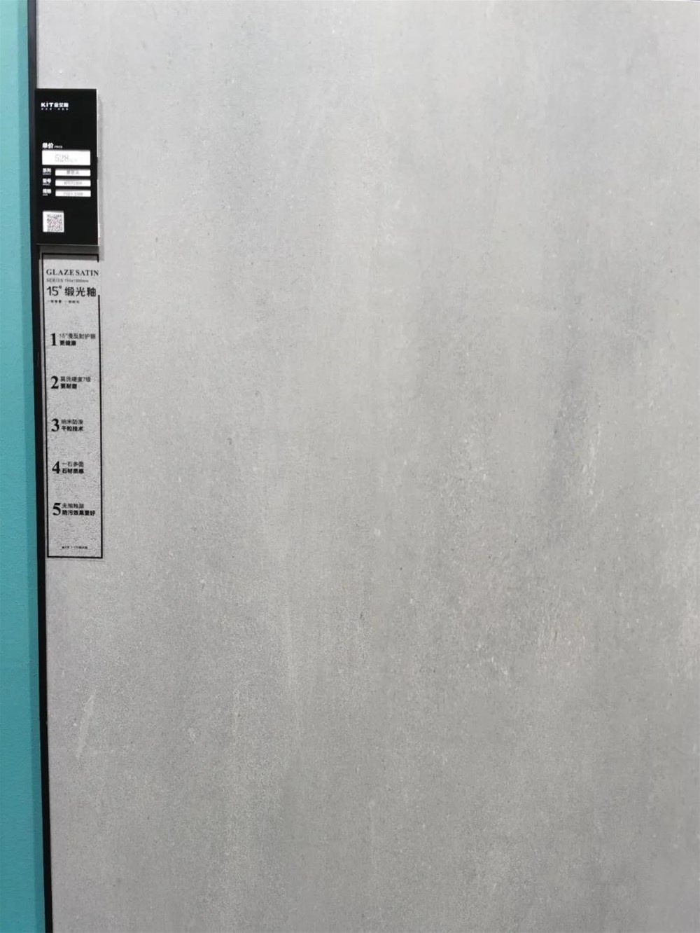 劉總:傳統(tǒng)拋釉磚會慢慢被淘汰。與傳統(tǒng)拋釉、仿古、柔光磚相比,緞光釉最大的優(yōu)勢是沒有拋過,釉料是自主研發(fā)的優(yōu)質(zhì)緞光釉釉料,從窯爐出來就呈現(xiàn)15度的光澤,很接近天然石材的自然光澤,不刺眼,不傷眼。釉層厚實無毛細孔,防污、防滑,你用手掌摸一下就知道,柔和溫潤,很像嬰兒的肌膚一樣細膩。