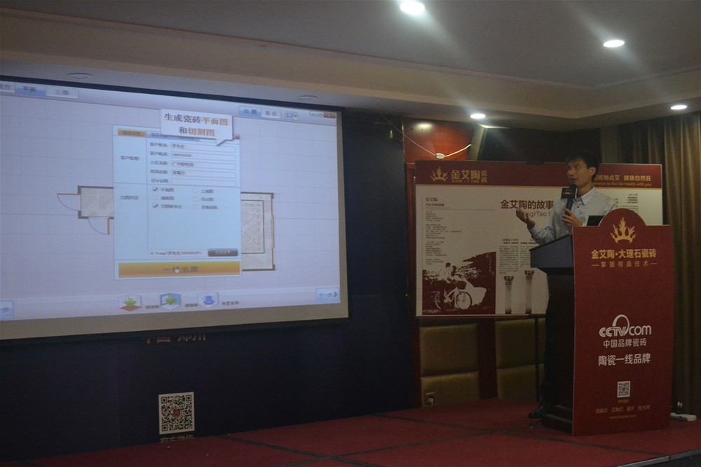 金艾陶3D設(shè)計(jì)系統(tǒng)培訓(xùn)導(dǎo)師陳嘉輝為現(xiàn)場(chǎng)經(jīng)銷商介紹金艾陶3D設(shè)計(jì)系統(tǒng)