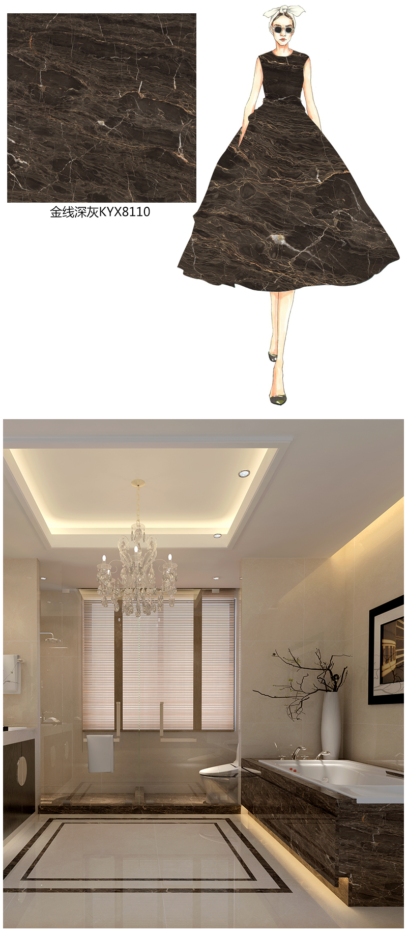 金艾陶金線深灰,將錯(cuò)落有致的紋理溶入柔和的灰色里,花紋均勻細(xì)致,光澤度高,將委婉的柔美呈現(xiàn)在空間里,裝飾空間具有獨(dú)特的奢華和柔和。