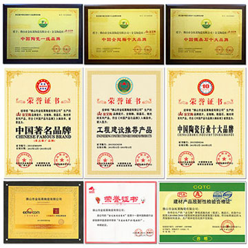金艾陶瓷磚先后榮獲陶瓷一線品牌、微晶石十大品牌、全拋釉十大品牌、陶瓷十大品牌、工程建設(shè)推薦產(chǎn)品、綠色環(huán)保推廣產(chǎn)品、2014年年度優(yōu)秀產(chǎn)品、ISO9001-2008認(rèn)證、央視網(wǎng)廣告合作伙伴等多項(xiàng)殊榮。