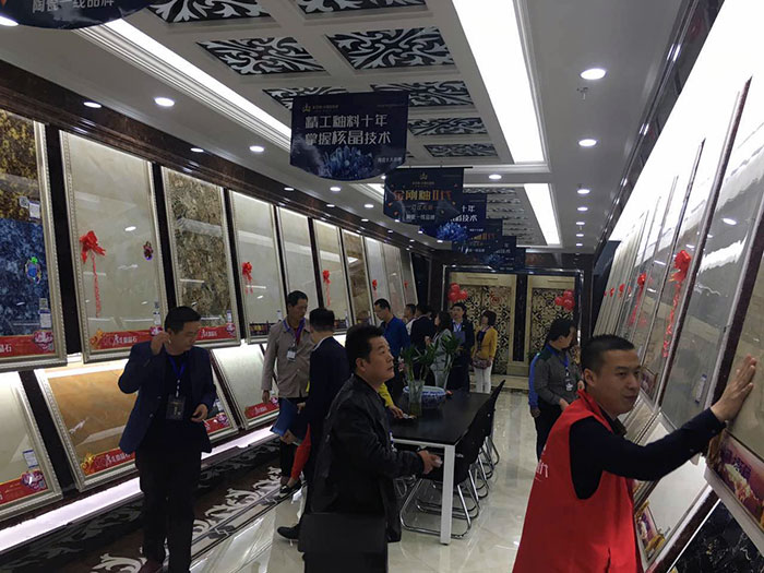 金艾陶瓷磚品牌營銷總經(jīng)理羅勝先生介紹金艾陶新品——金剛釉II代