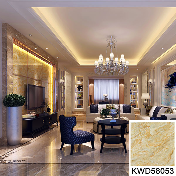客廳使用陶瓷一線品牌金艾陶2.0厚微晶石瓷磚:法國-新絲玉KWD58053瓷磚做背景墻,金黃的色調(diào)與飽滿的熱情,充滿流動感的脈絡(luò),給空間一種暖暖的質(zhì)感,這是自然烙印的藝術(shù)力量,簡約中卻潛伏著深沉的王者姿態(tài)。