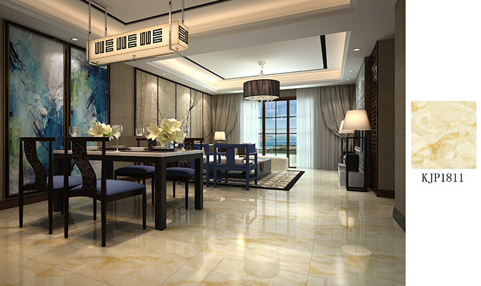 拋開復(fù)雜的設(shè)計(jì),以線條為主線, 陶瓷一線品牌金艾陶瓷磚金剛釉瓷磚香檳玉KJP1811的運(yùn)用,賦予空間優(yōu)雅、簡潔、溫馨的格調(diào)。特色的燈飾與桌椅,簡潔中透漏著高貴的氣質(zhì),桌面上精心陳設(shè)的花朵,給人無限遐想的空間。