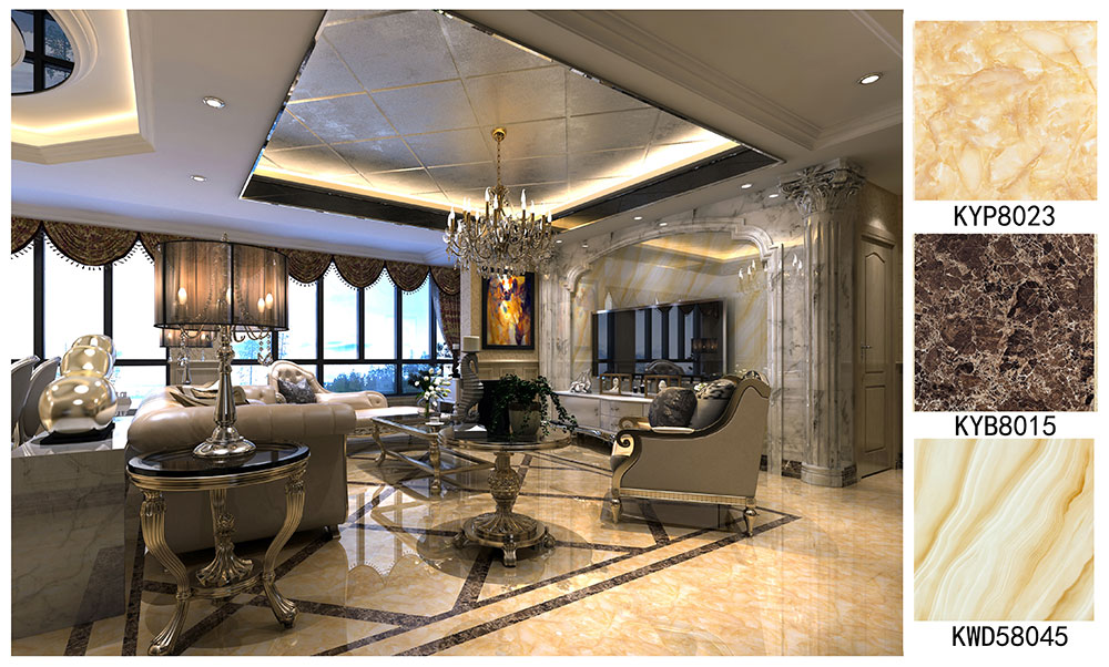 陶瓷一線品牌金艾陶全拋釉KYP8023+KYB8015+微晶石瓷磚KWD58045效果圖
