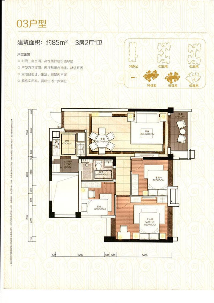 戶型:03戶型3室2廳85㎡