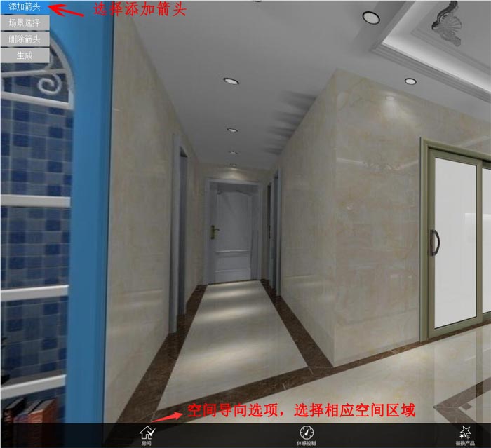 8.2、添加進入其他房間箭頭后,進入場景選擇選擇相應的場景(場景需要跟箭頭選擇的空間保持一致)。
