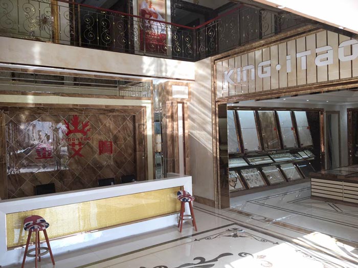江蘇南通金艾陶瓷磚品牌專賣店位于南通市港閘區(qū)新永興倉(cāng)儲(chǔ)1期,展示面積600多方,辦公區(qū)域150多方。整個(gè)店面設(shè)計(jì)奢華大氣,店內(nèi)設(shè)有客餐廳、廚房、衛(wèi)生間等不同應(yīng)用功能的多個(gè)模擬樣板間,產(chǎn)品有9面通體大理石瓷磚、金剛釉II代瓷磚、金剛釉瓷磚、微晶石、艾釉石、噴墨瓷片、拋光磚等多個(gè)品類瓷磚,滿足眾多消費(fèi)者的選購(gòu)需求。