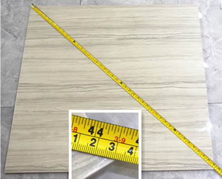 在測(cè)評(píng)現(xiàn)場(chǎng),測(cè)試這款法國(guó)灰木紋尺寸是800mmX800mm的方形瓷磚,測(cè)評(píng)人員使用標(biāo)準(zhǔn)尺子量度,得出結(jié)果是長(zhǎng)800mm*寬800mm,對(duì)角線為1131mm,做工與規(guī)格精準(zhǔn)、分毫不差,可展露出金艾陶瓷磚,在生產(chǎn)研發(fā)上工藝嚴(yán)謹(jǐn),尺寸規(guī)格把控一貫出色。