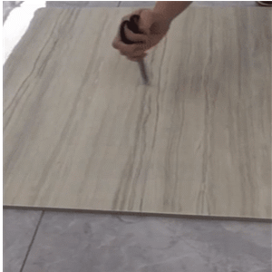 測(cè)試人員為了檢測(cè)這款瓷磚的耐磨真實(shí)性,用專業(yè)礦物硬度標(biāo)本(即莫式硬度計(jì))5度的礦物硬石在瓷磚上來(lái)回劃過(guò)后,發(fā)現(xiàn)瓷磚表面沒(méi)有留下任何的劃痕。再取一尖銳的銼刀,在瓷磚上來(lái)回快速刮磨,被用力刮磨后的瓷磚無(wú)任何磨損刮痕,紋理無(wú)斷層、瓷面無(wú)破壞,瓷磚仍然平整、光滑,說(shuō)明這款瓷磚的耐磨性能很強(qiáng)大。