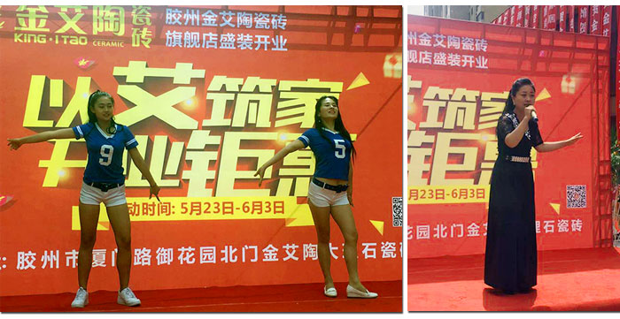 精彩的開場節(jié)目過后,金艾陶瓷磚品牌營銷總經(jīng)理羅勝首先為本次開業(yè)活動致辭。羅總對金艾陶瓷磚山東膠州專賣店的盛大開業(yè)表示祝賀,同時也期望金艾陶瓷磚山東膠州專賣店能將更多好產(chǎn)品和好服務(wù)帶給膠州的消費者。隨后,金艾陶瓷磚山東膠州專賣店總經(jīng)理李鵬飛為活動致辭。臺上歌舞繚繞,臺下座無虛席,熱鬧非凡。