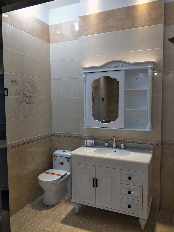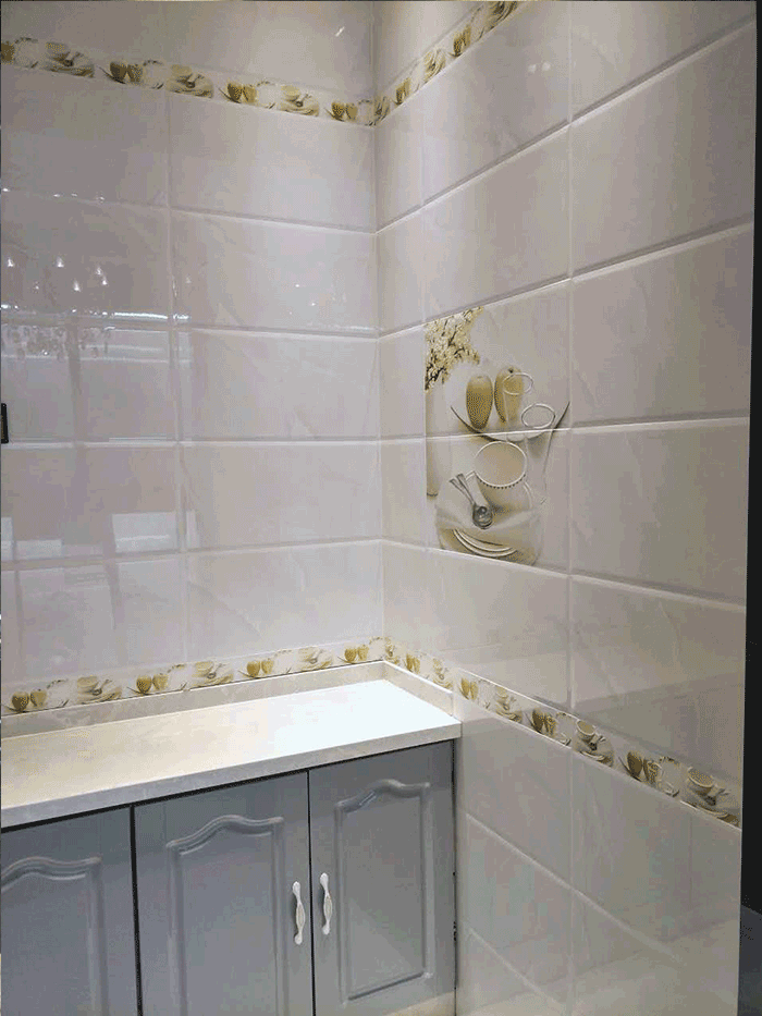衛(wèi)浴空間鋪貼包括淺色上墻,深色下墻及配套花片產(chǎn)品,陶瓷一線品牌金艾陶不僅配套產(chǎn)品齊全,花色也比較新穎。