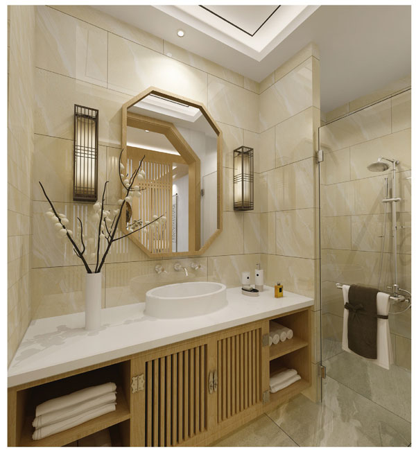 3、鋪貼前先進行放線定位和排磚,非整磚應(yīng)排放在次要部位或者陰角處,好以由下向上的方向,從底部開始整磚鋪設(shè)以保證整個衛(wèi)生間的裝修效果。每面墻不宜有兩列非整數(shù),非整寬磚寬度不宜小于整磚的1/2.貼墻磚時應(yīng)注意半磚應(yīng)排在頂部,磚縫寬2~4MM;