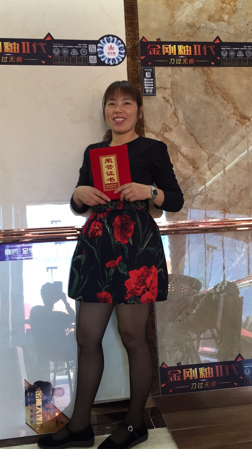 甘肅張掖金艾陶陶瓷店店長,有幸參加了金艾陶舉辦的首屆導購評選大賽,以自身專業(yè)的努力,為榮譽而戰(zhàn),在團隊伙伴們的辛勤付出下,在此活動中獲得第一名,感謝總公司給予的平臺和榮譽,讓自己在瓷磚銷售店面管理方面有了更多的成長和認知。