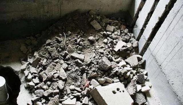 有網(wǎng)友在重新安裝馬桶的時(shí)候發(fā)現(xiàn),當(dāng)初填充下沉空間的竟是自家敲墻遺留的建筑垃圾。