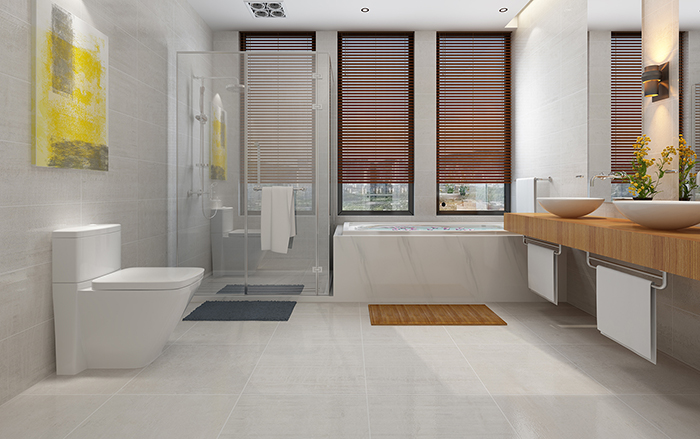 最簡約的鋪貼形式,“方格鋪”對于外形橫平堅直的現(xiàn)代仿古磚來說,省工省料且自然大方,完美呈現(xiàn)出一個耐看舒心的空間。
