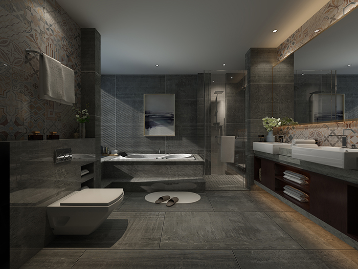 “工字鋪”適用于長條瓷磚的鋪貼,錯落有致的“工字”,讓色調(diào)偏中性的現(xiàn)代仿古磚,構(gòu)造出簡約而不簡單的視覺效果。