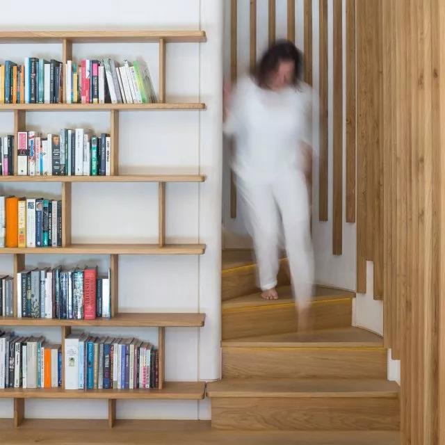 樓梯旁邊位置不大也沒關(guān)系,一個(gè)簡(jiǎn)潔書架就可以滿足讀書角的要求了。