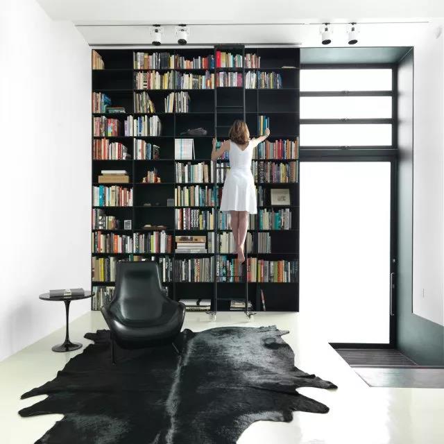 房頂高的屋子大氣舒適,將書柜一直延伸至房頂,適合存書量非常多家庭,當(dāng)然存放一些影碟或者紅酒也是不錯(cuò)的。