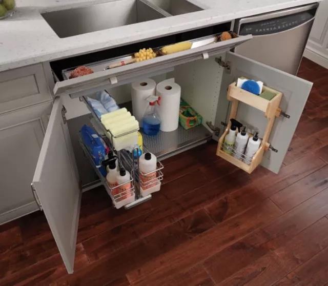 廚房空間不大,東西卻不少,如果沒有收納好,加上油煙肆虐,廚房一定成了烏煙瘴氣的地方,所以說,廚房裝修首先考慮的問題是—收納!